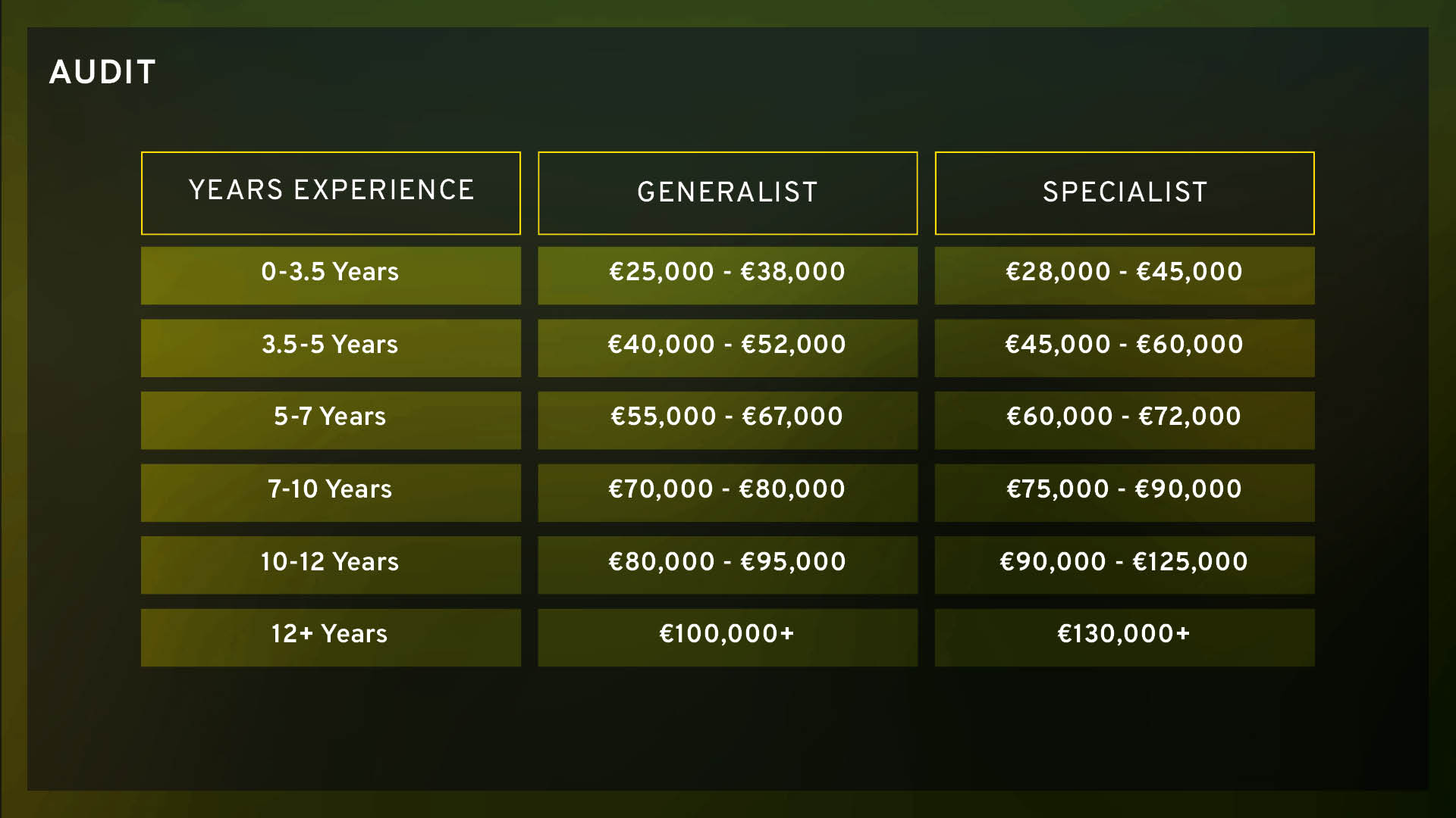 For the purposes of transparency, we’re going to focus on years of experience and audit category (Specialist or Generalist).