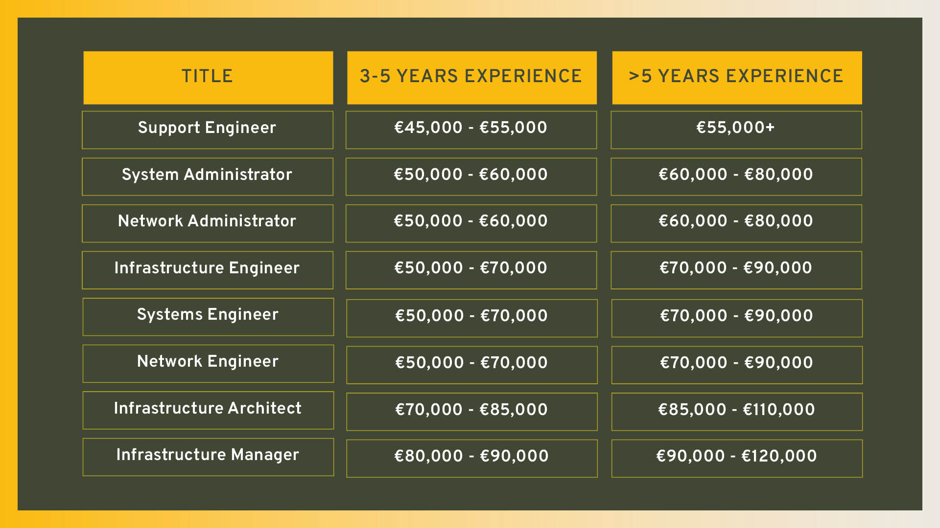 Salaries for IT infrastructure roles in Ireland vary widely, and for good reason. Here are the key factors that influence base salary: