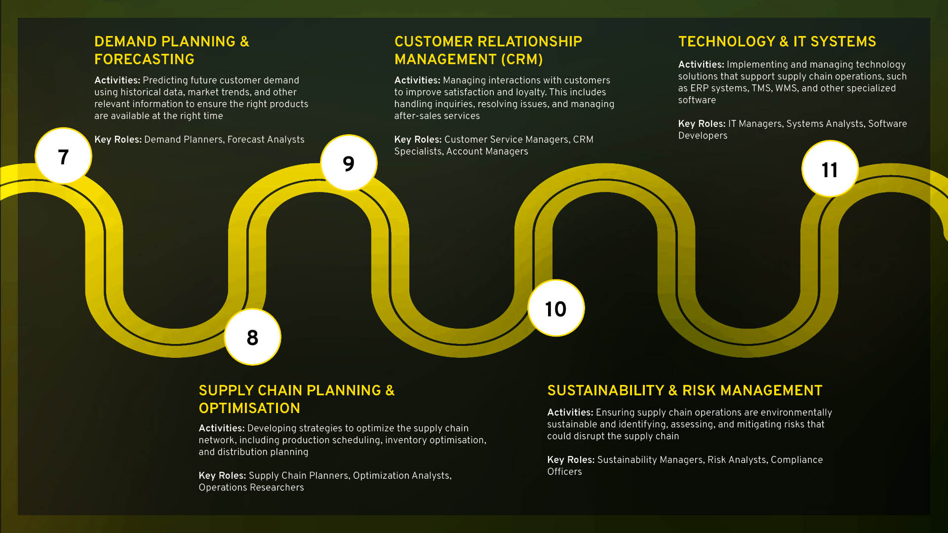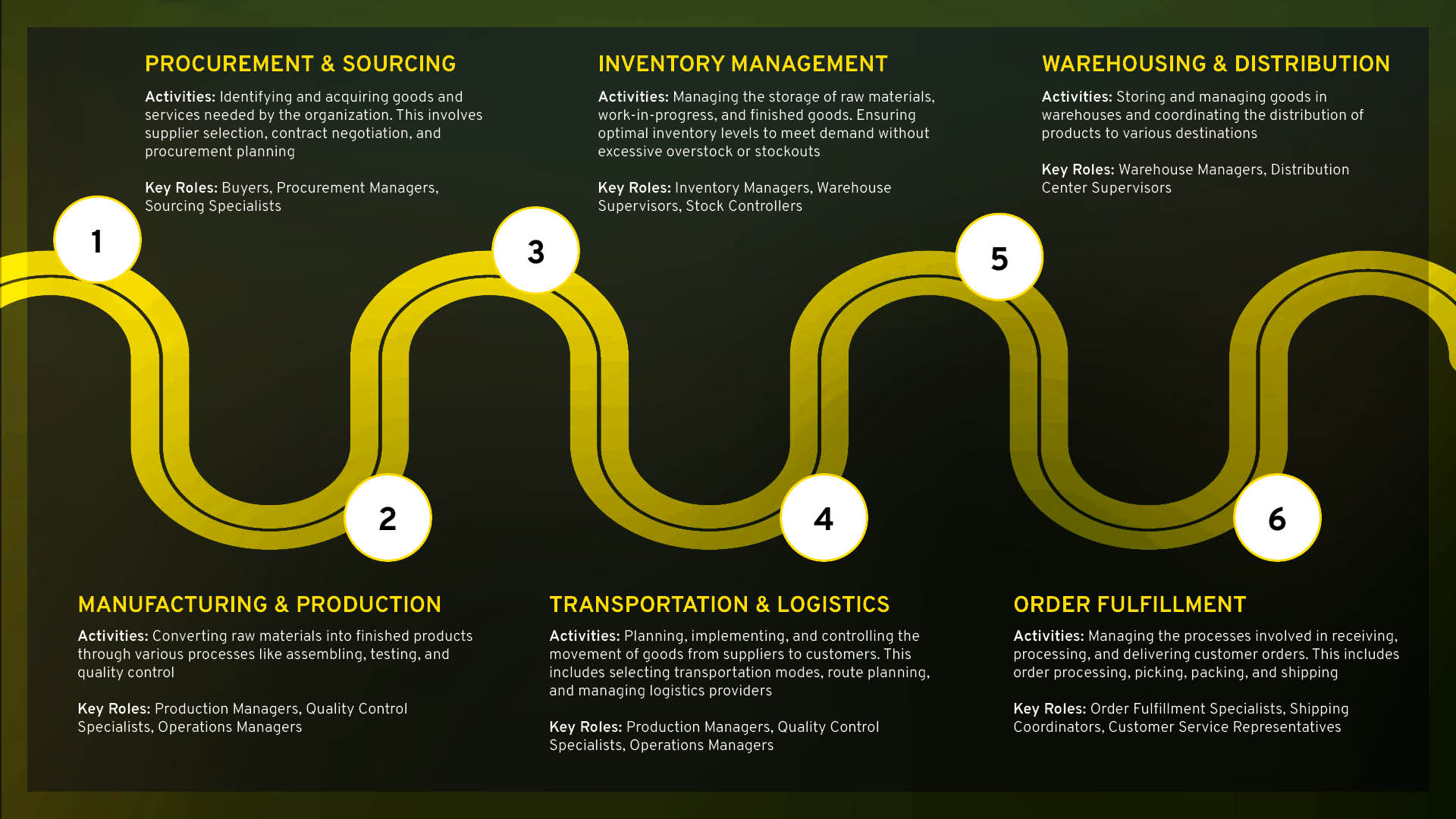 The variety of roles in the supply chain management space continues to grow and there are a significant number of distinct sectors or categories within the broader supply chain ecosystem nowadays. Each vertical encompasses specific functions, processes, and roles critical to the efficient operation and management of the supply chain. These include: