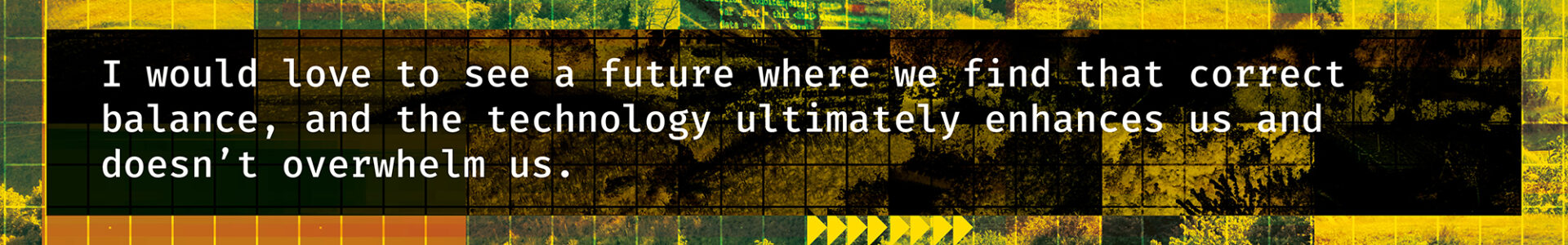 I also think of the efficiency tech has given us; online banking means we don’t have to wait in queues at banks that close at 5 p.m. We can move money and make payments instantly. But on the flip side, online gambling makes it easier than ever to spend huge amounts of money from your phone at home. It’s a double-edged sword. Every upside has a downside, and the challenge is keeping those in balance, so we don’t end up with hugely negative consequences.