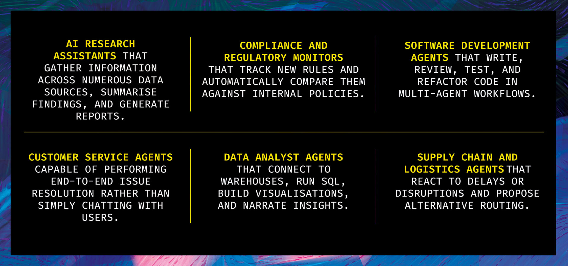 - A multi-agent workflow deployed to AWS or GCP, complete with logging, monitoring, and alerts
