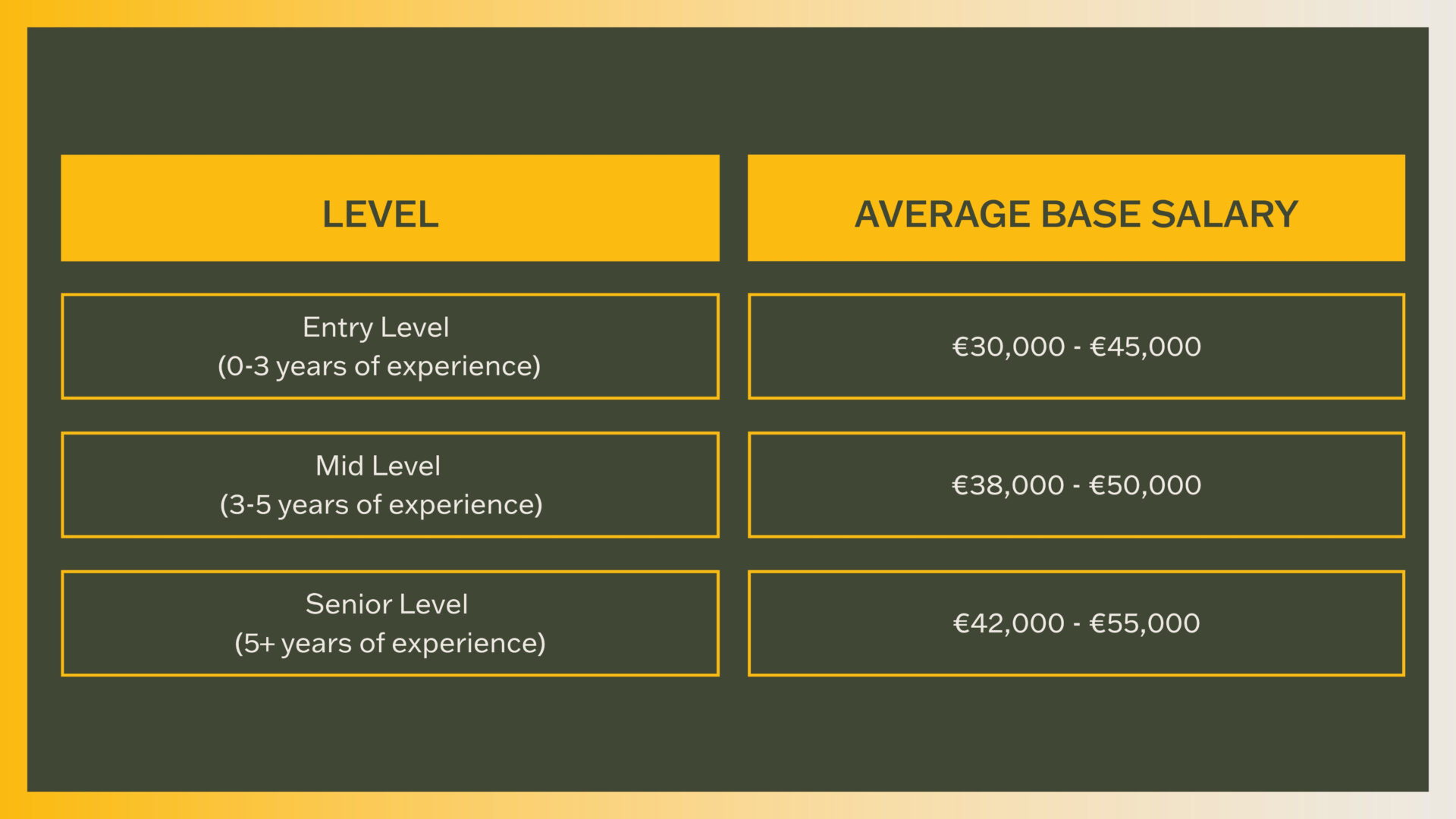 It’s important to note some caveats to the salary ranges above. Leading a team—typically 1–5 people (€60,000 – €65,000) or 5+ people (€70,000+)—can increase compensation. Similarly, roles focused on specific projects, such as transformation, automation, or AI, may command higher pay. The extent of any increase generally depends on the proportion of time spent on day-to-day responsibilities versus project-based work.